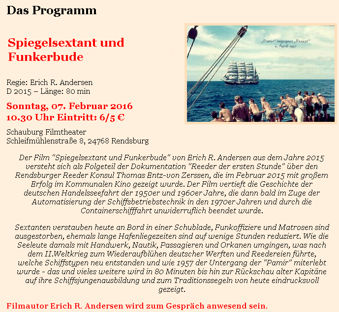 die seefahrthistorische Zeit der Weltkrieg II- Nachkriegsseefahrt. Es hat sich ebenfalls als kinotauglich erwiesen. Volle