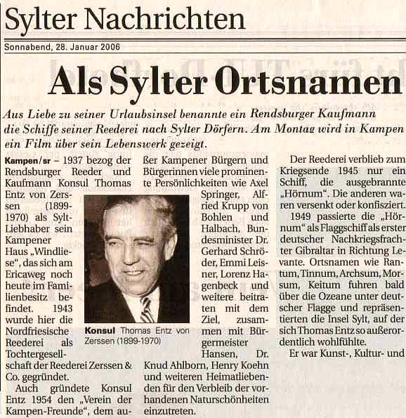 Konsul Entz, wie er auf Sylt nur genannt wurde, ist über die Zeitungen und diesen Film wieder